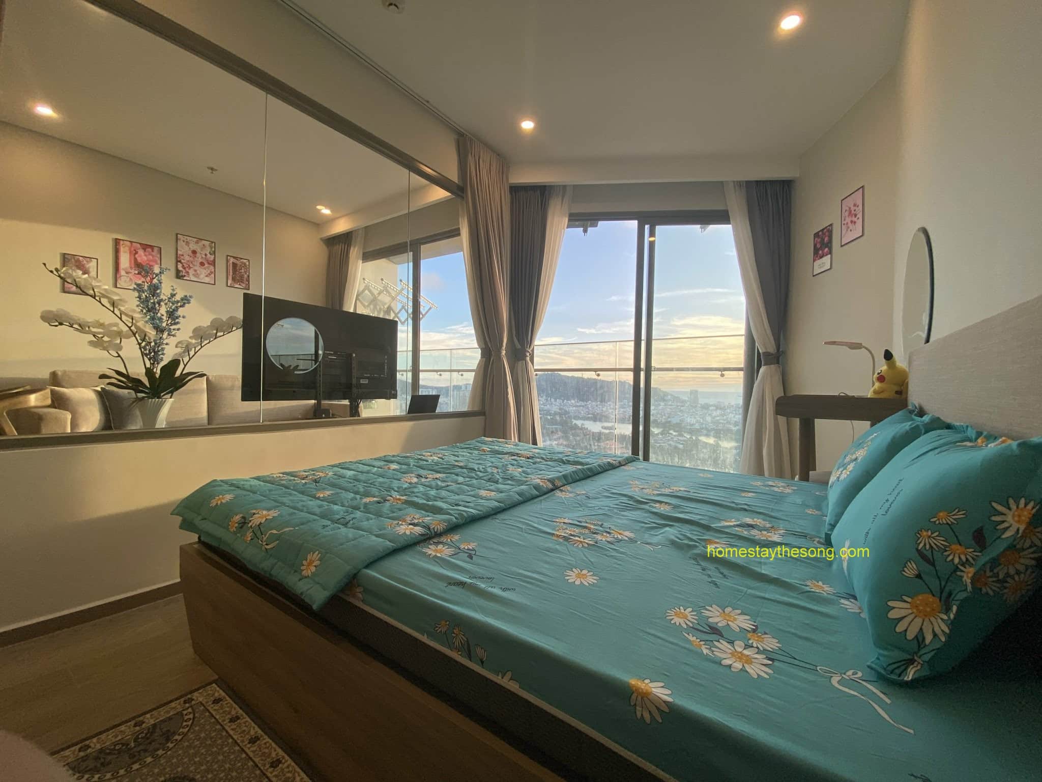 Tầm nhìn từ căn hộ là view Pullman, nhìn xéo thấy biển, mang lại cảm giác thư thái và tận hưởng khung cảnh biển tuyệt đẹp. Căn hộ được trang bị đầy đủ nội thất cao cấp, bao gồm cả bếp và dụng cụ nấu ăn, giúp bạn có thể tự do nấu nướng và tận hưởng những bữa ăn ngon tại căn hộ.