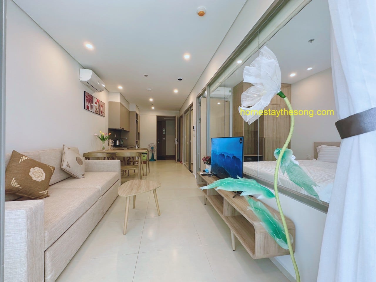 Các căn hộ tại The Sóng được thiết kế với không gian rộng rãi và thông thoáng, giúp bạn cảm thấy thoải mái và thoải mái. Điều này đặc biệt quan trọng khi bạn lưu trú trong thời gian dài hoặc đi cùng gia đình.