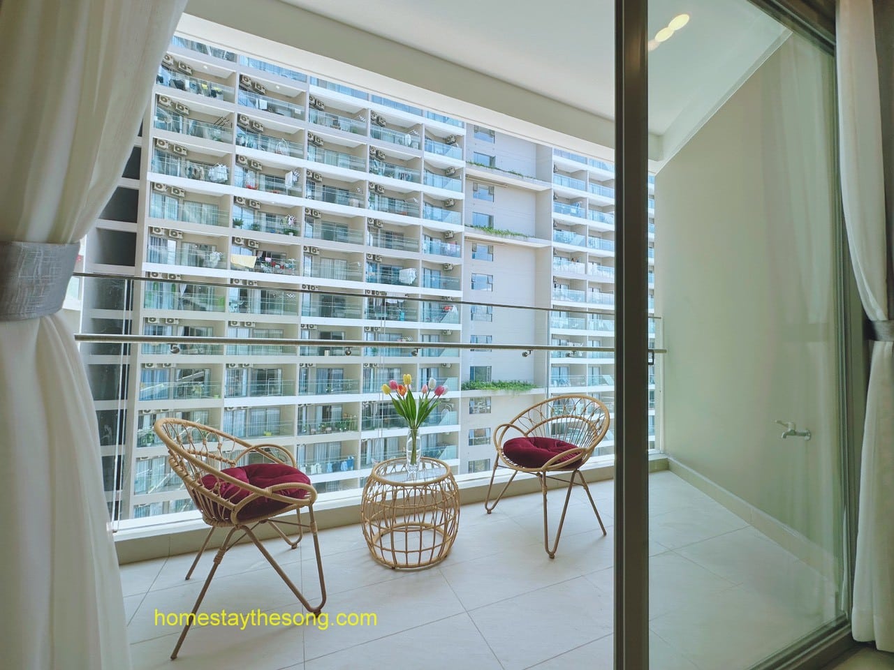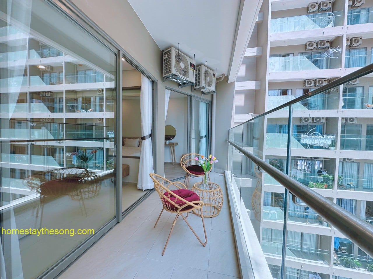 Một số căn hộ tại The Sóng có sân hiên riêng tư, nơi bạn có thể thư giãn và ngắm cảnh ngoại trời mà không bị xâm nhập. Sân hiên này thường được trang bị bàn ghế để bạn có thể tận hưởng không gian ngoài trời.
