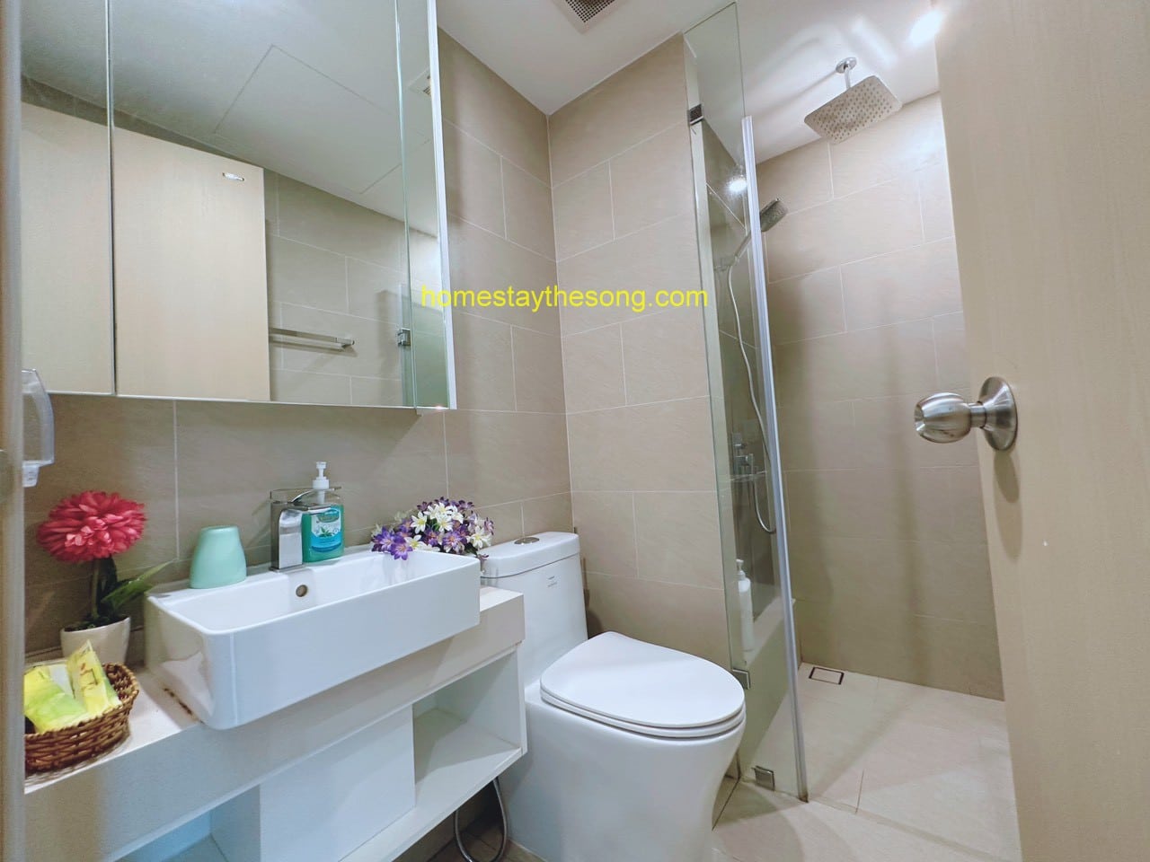 - 2 phòng tắm, trong đó có 1 phòng tắm lớn rộng 15m2 có bồn tắm, và 1 phòng tắm nhỏ.