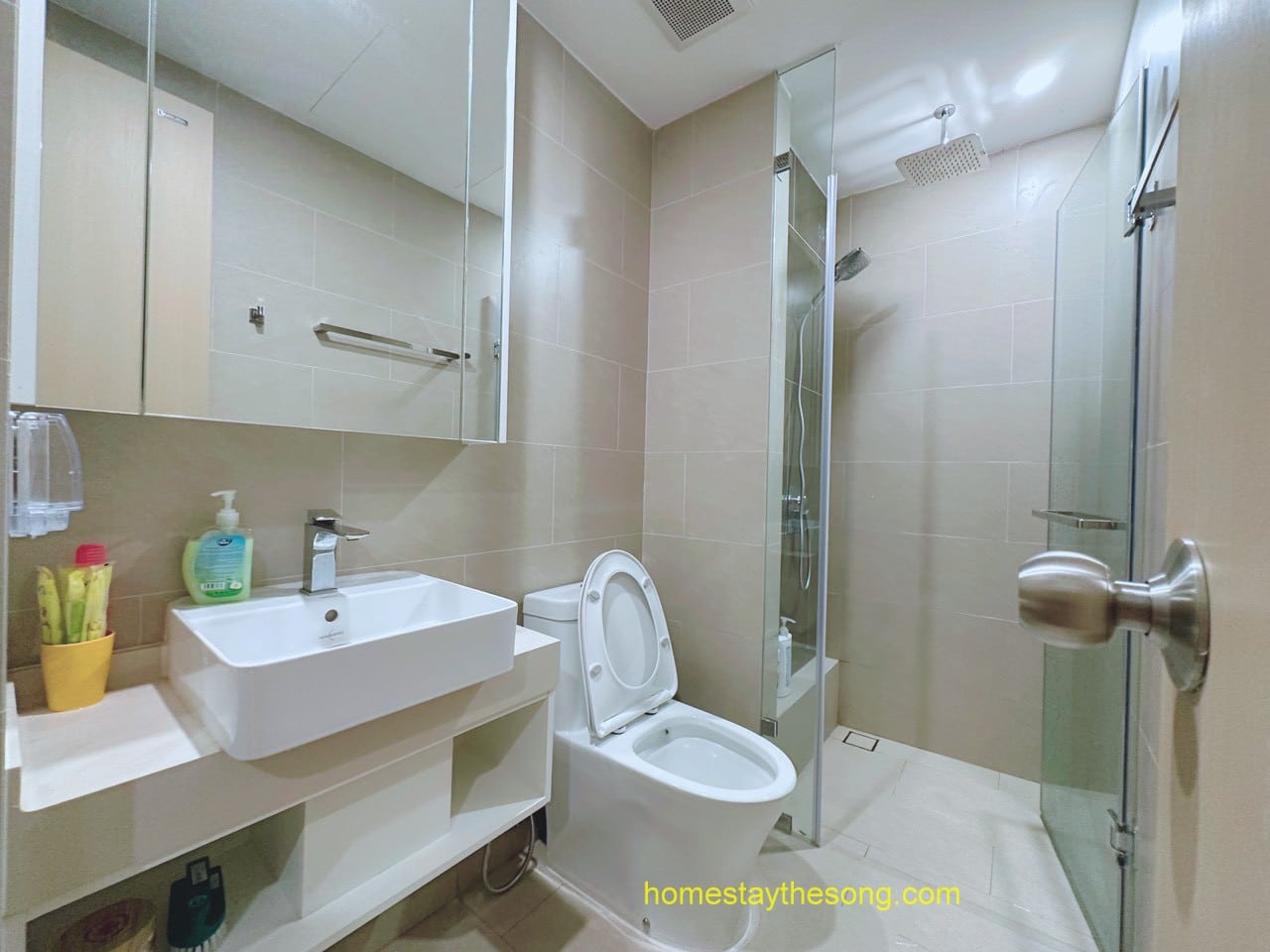 - Trang bị bàn chải, giấy vệ sinh, dầu gội sữa tắm, khăn tắm.