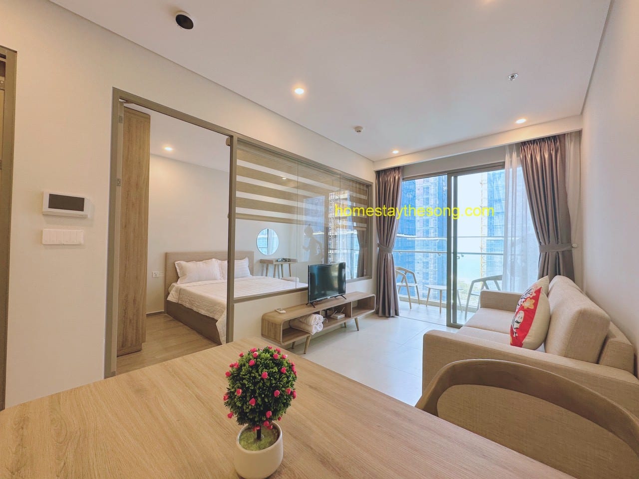 - Căn hộ nằm ở tầng 26, và bạn có thể thưởng thức view ngoại trời và nghiêng để nhìn thấy biển.