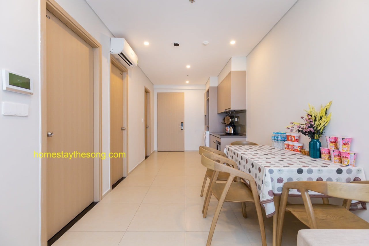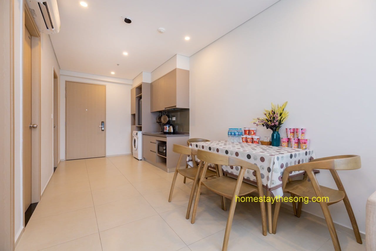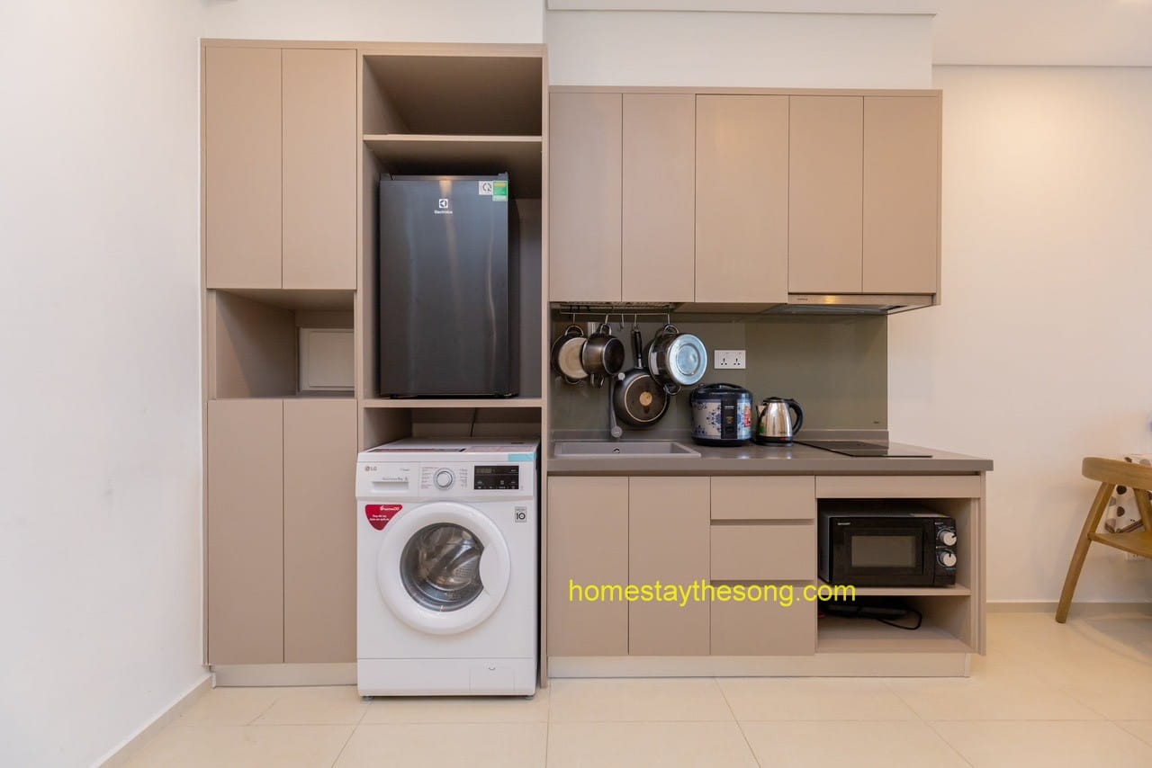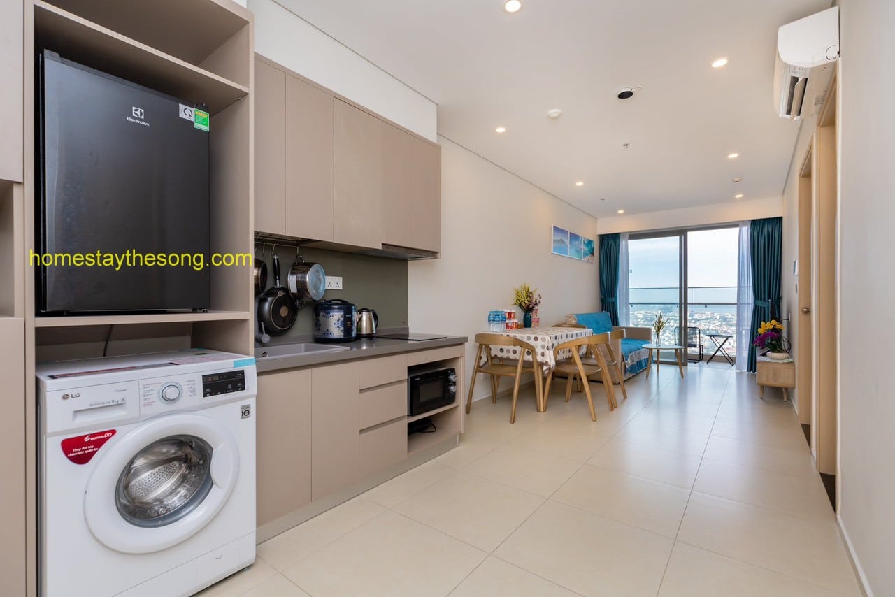 Căn hộ 32.03 cũng được trang bị đầy đủ các tiện ích và nội thất cao cấp, đảm bảo rằng bạn có một trải nghiệm sống tiện nghi và thoải mái. Bếp được trang bị đầy đủ dụng cụ nấu ăn, cho phép bạn tự do chuẩn bị các bữa ăn ngon tại nhà.