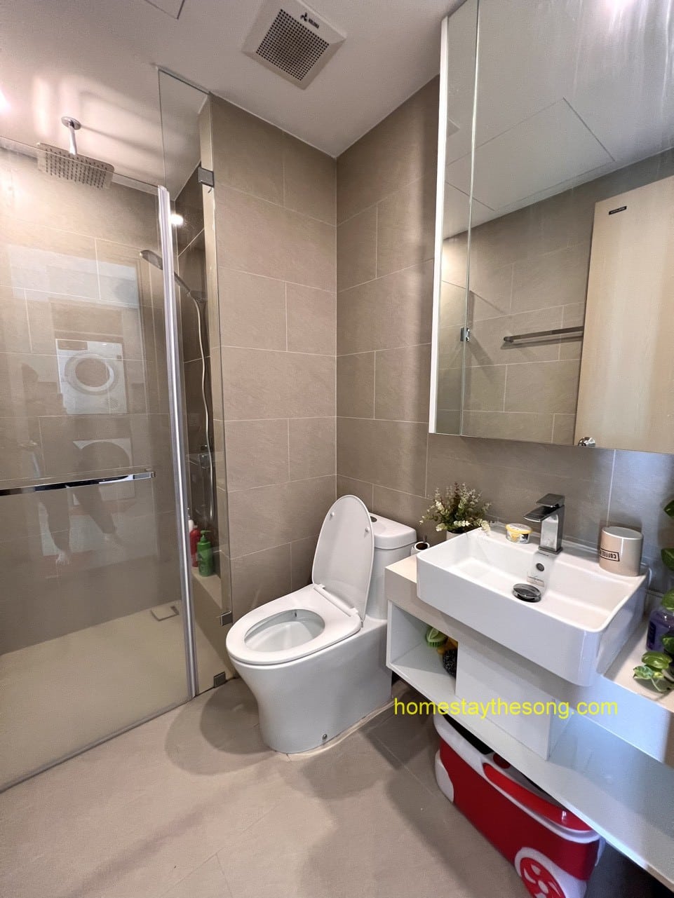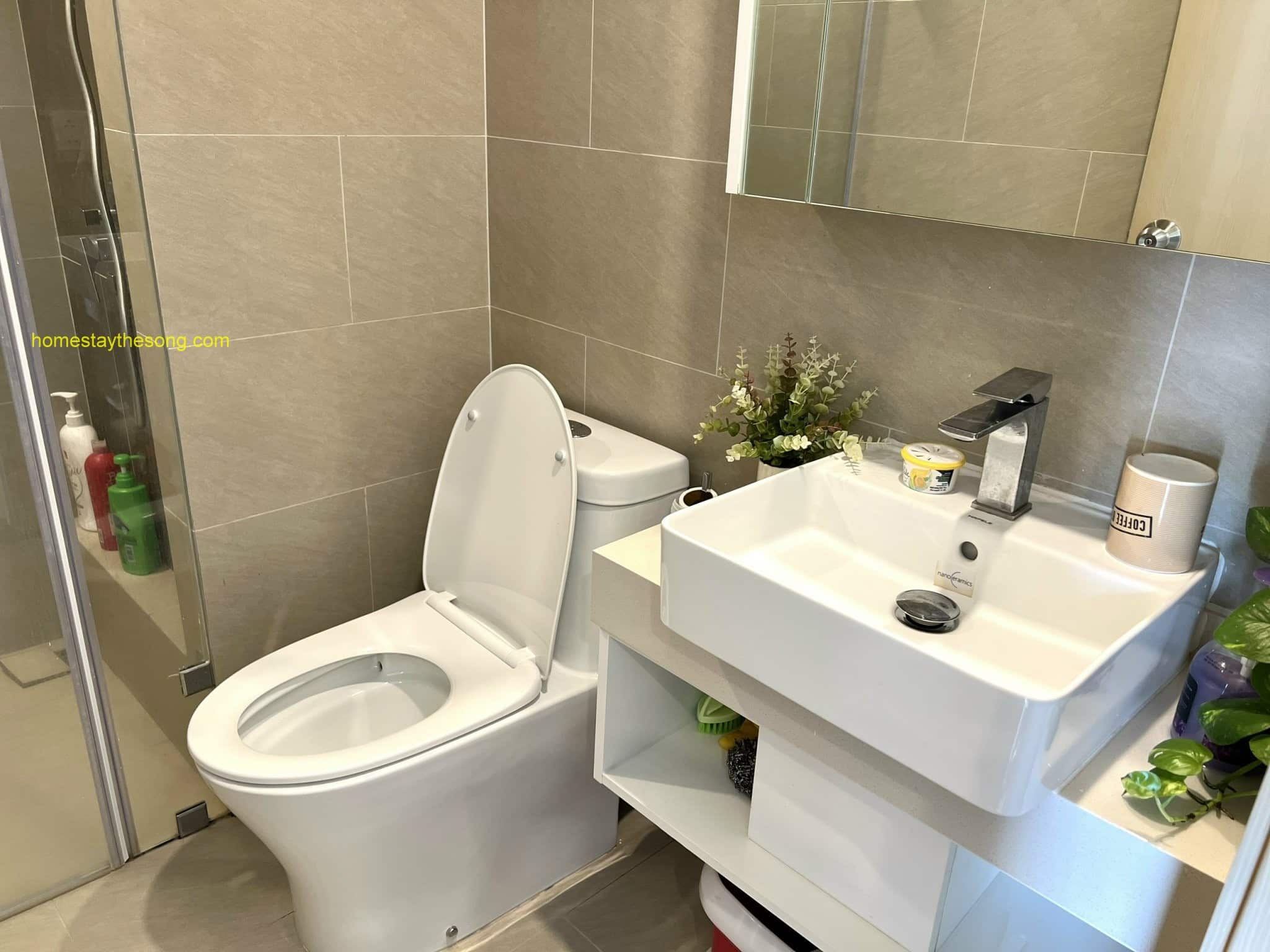 Căn hộ được trang bị đầy đủ nội thất cao cấp, mang đến sự sang trọng và tiện nghi. Bếp trong căn hộ có đầy đủ dụng cụ nấu ăn, giúp bạn tự do thực hiện các món ăn ngon tại căn hộ.