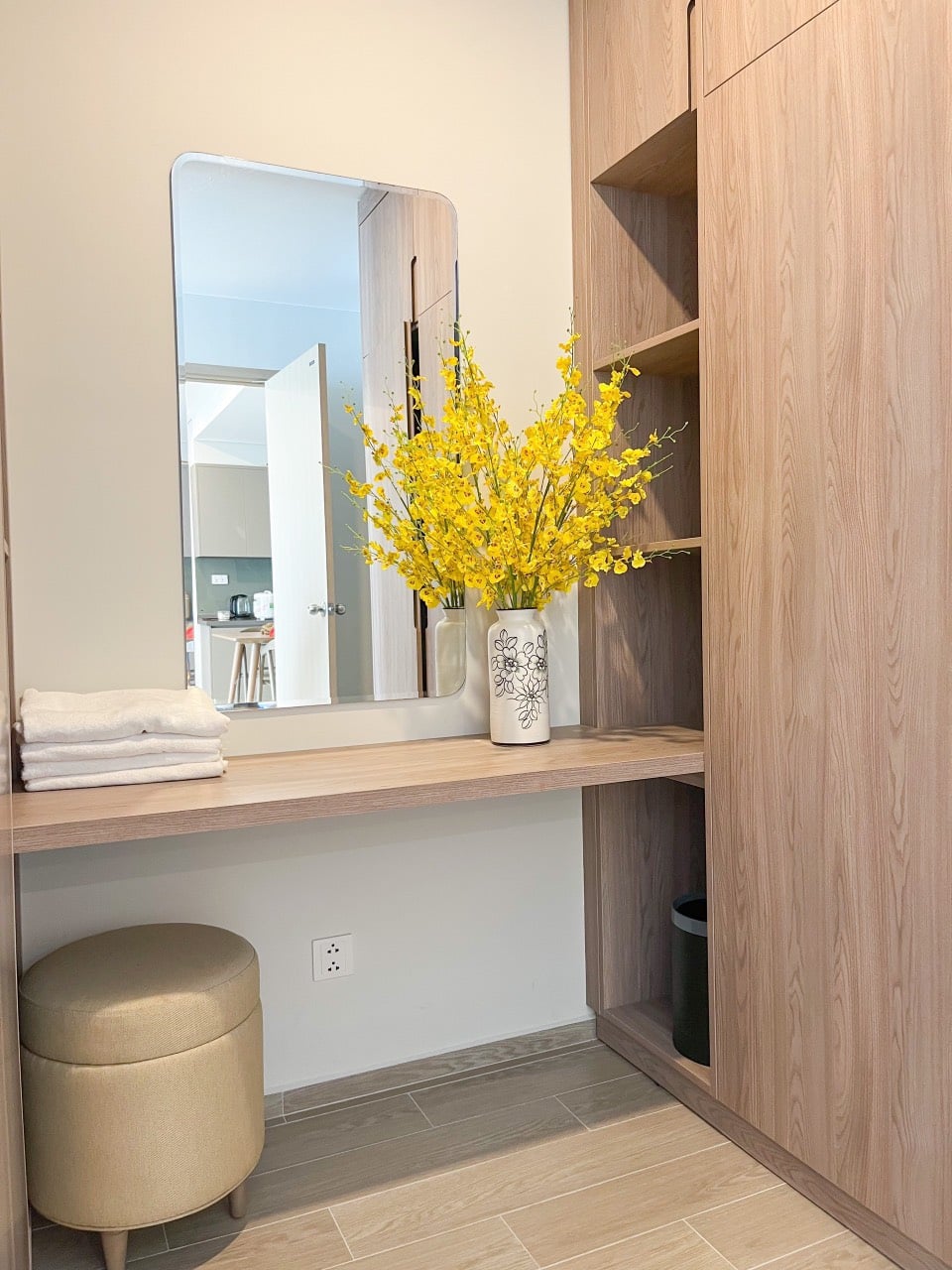- Vệ sinh và lau dọn thường xuyên: Các khu vực chung và căn hộ được vệ sinh và lau dọn thường xuyên, đặc biệt là các bề mặt tiếp xúc như cửa kính và bàn làm việc.