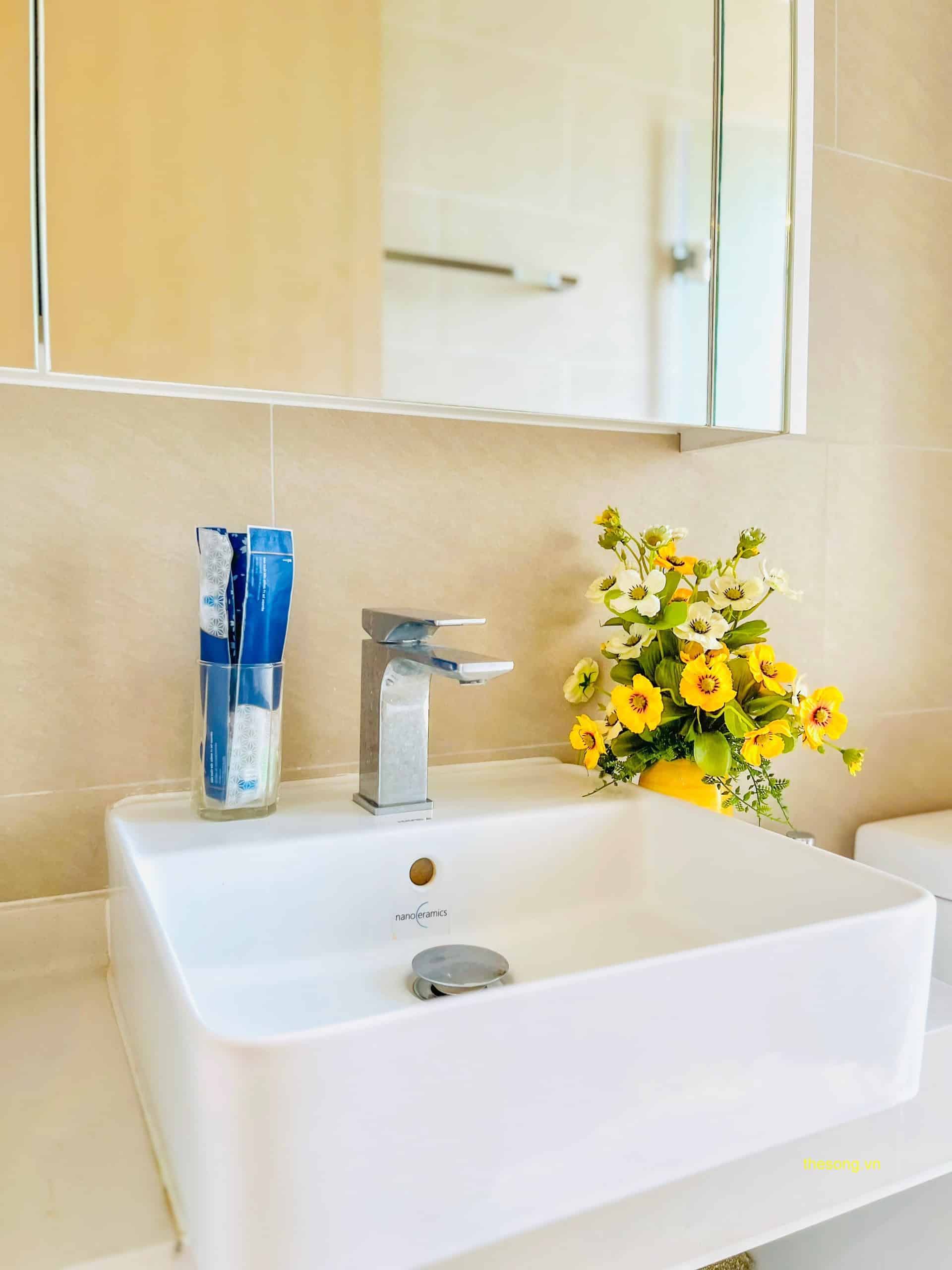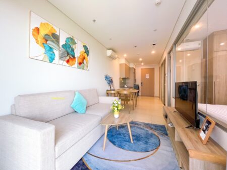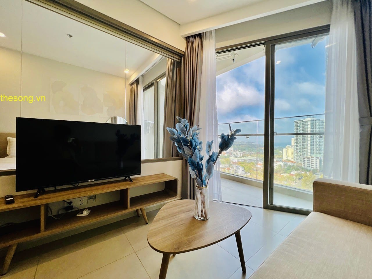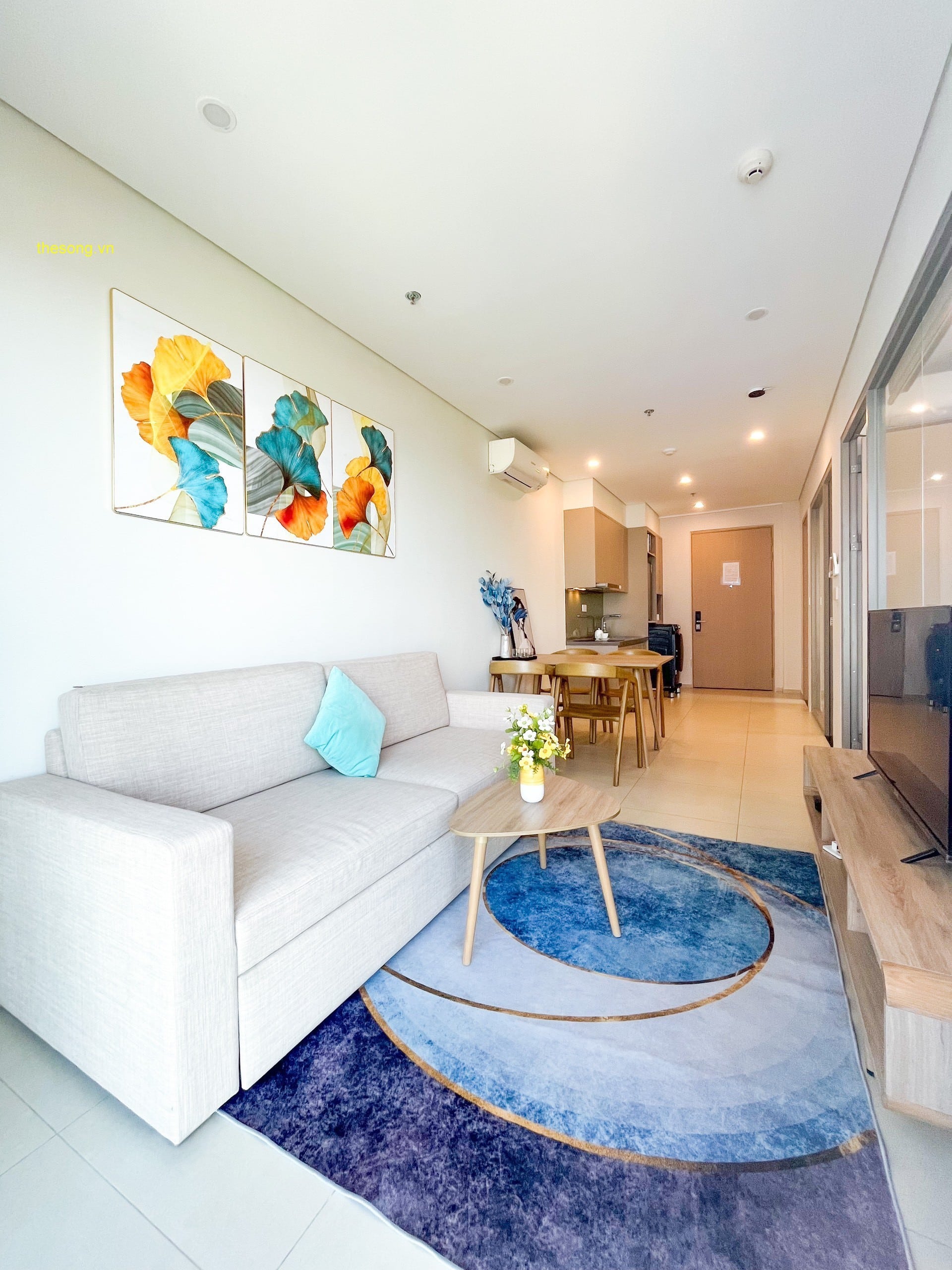 Căn hộ được trang bị đầy đủ nội thất như: máy lạnh, máy giặt, máy nước nóng, máy sấy tóc, quạt máy, Tivi Smart Home, Wifi cáp quang, truyền hình cáp. Ngoài ra, còn cung cấp các tiện ích như dầu gội, khăn tắm, kem đánh răng, quạt máy và có ban công nhìn ra bên ngoài.