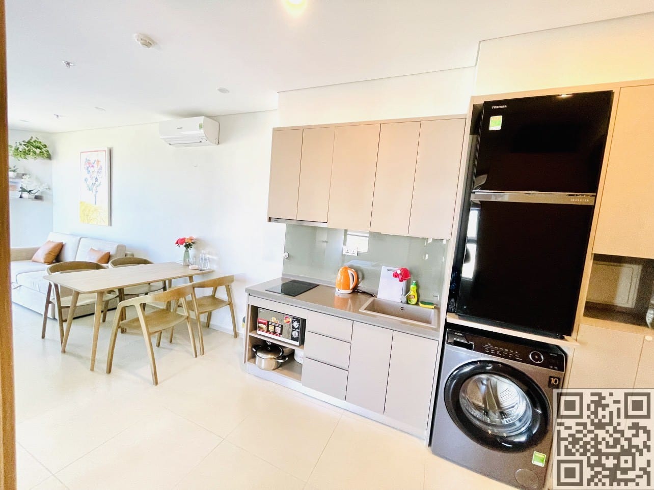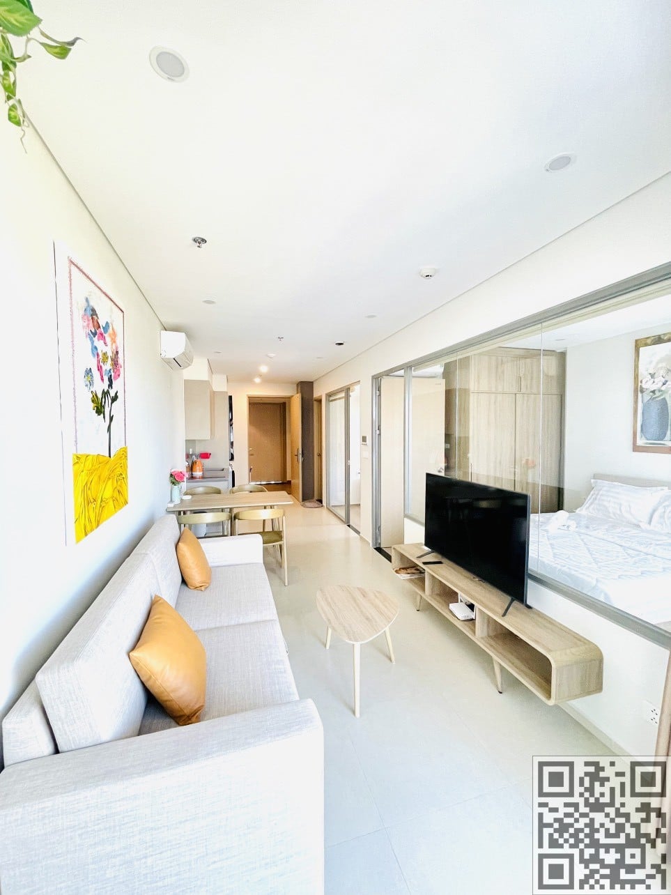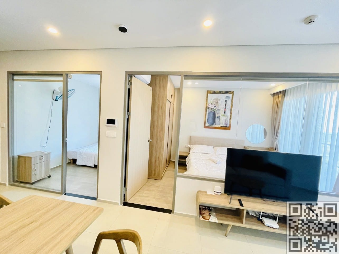 Căn hộ diện tích 50m2 với loại căn 1PN+ gồm 2 phòng ngủ và 1 phòng vệ sinh. Nội thất được trang bị đầy đủ, đảm bảo sự thoải mái và tiện nghi cho cuộc sống hàng ngày. Mỗi phòng ngủ được trang bị giường có kích thước 1,8x2m hoặc 1,6x2m và giường 1,6x2m hoặc 1,4x2m, cùng với sofa bed 1.4x2m cho nhiều sự linh hoạt trong việc chọn giường. Nếu cần, có thể yêu cầu thêm nệm để đảm bảo sự thoải mái hơn. Căn hộ có khả năng chứa đến 4-5 người, tạo điều kiện thuận lợi cho gia đình và nhóm bạn.