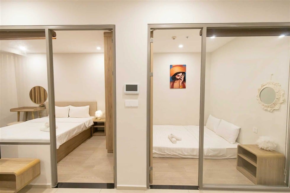 • Khách hàng có sự linh hoạt trong việc lựa chọn giường nghỉ, có thể chọn giữa một giường lớn hoặc hai giường đôi, tùy thuộc vào sự thoải mái và sự lựa chọn cá nhân.