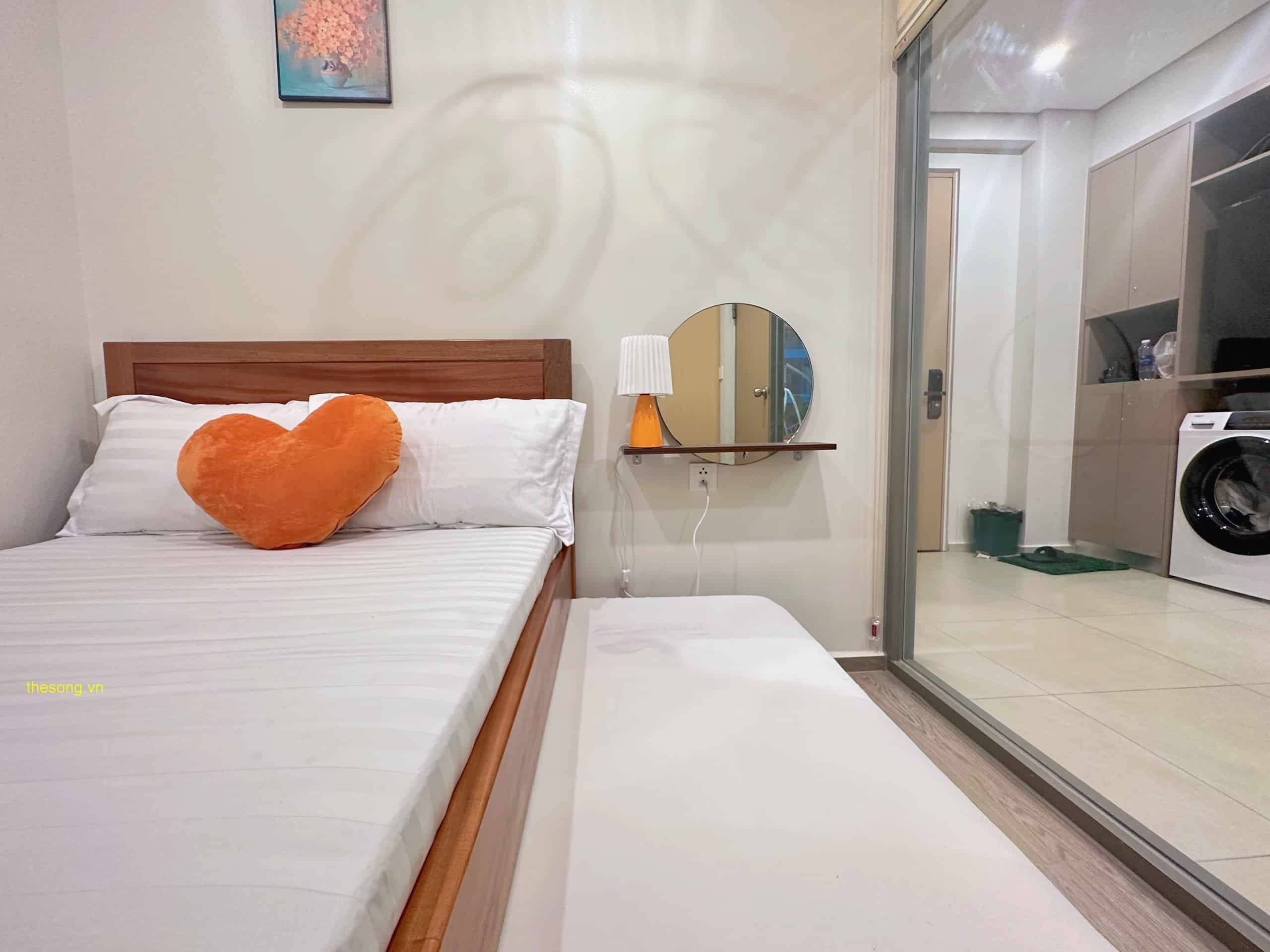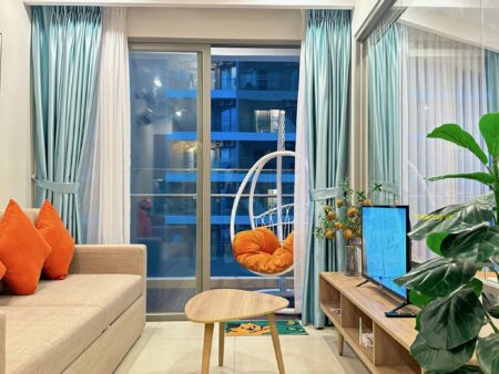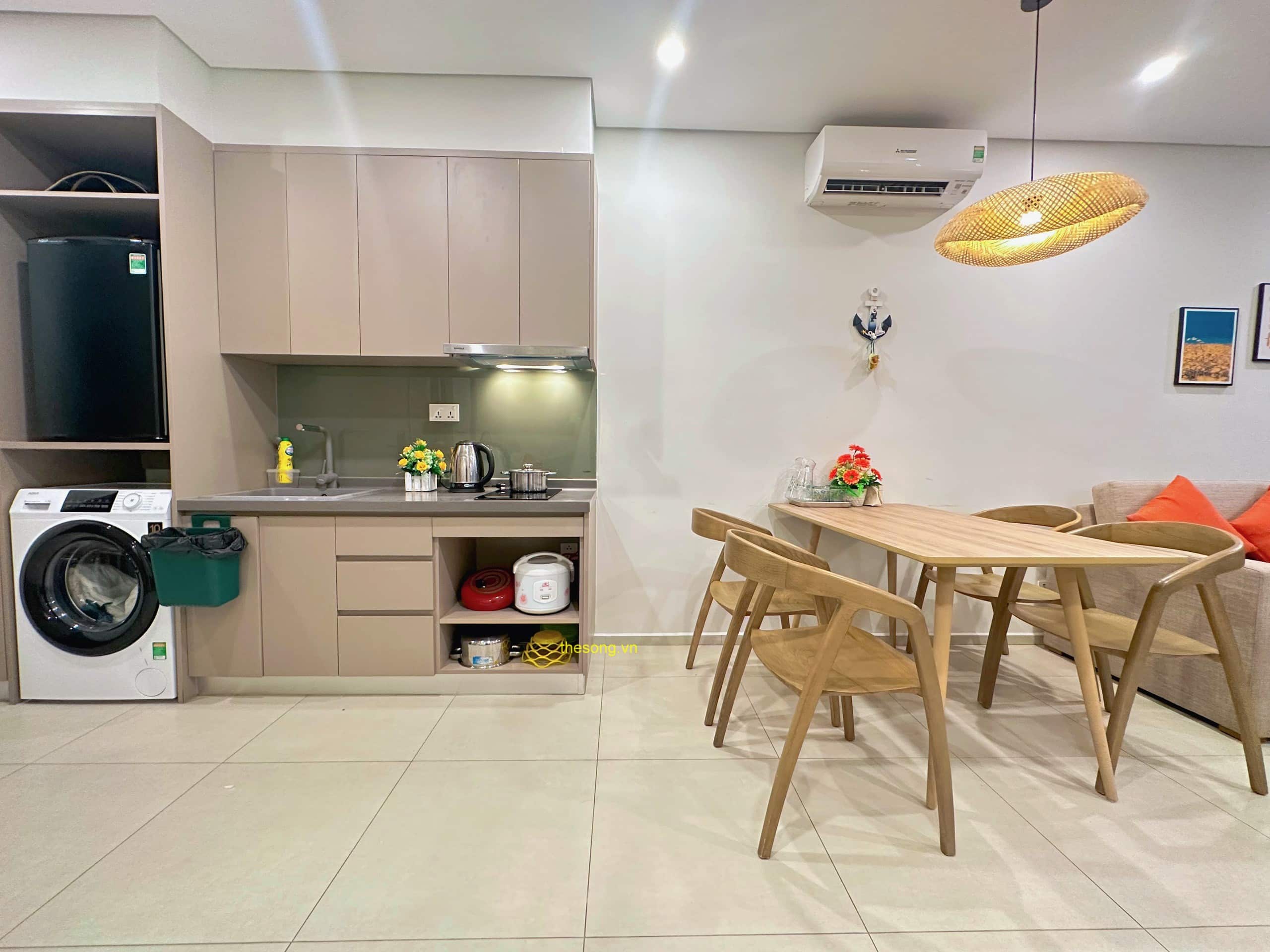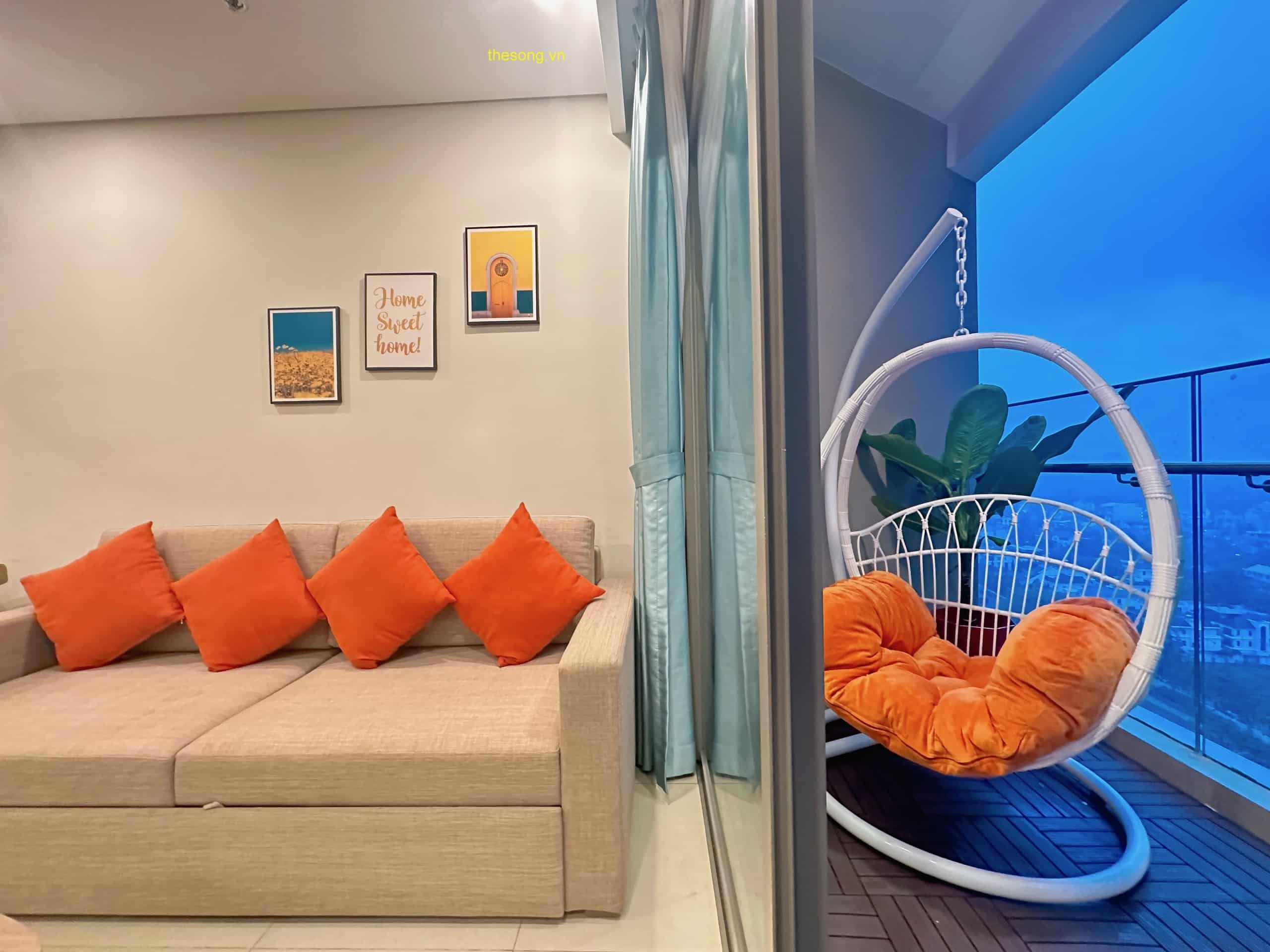 - Căn hộ được trang bị đầy đủ nội thất và tiện nghi như máy lạnh, máy giặt, máy nước nóng, máy sấy tóc, quạt máy, Tivi Smart Home, Wifi cáp quang, truyền hình cáp, dầu gội, sữa tắm, khăn tắm, kem đánh răng, và quạt máy. Có ban công nhìn ra bên ngoài để bạn có thể thư giãn.