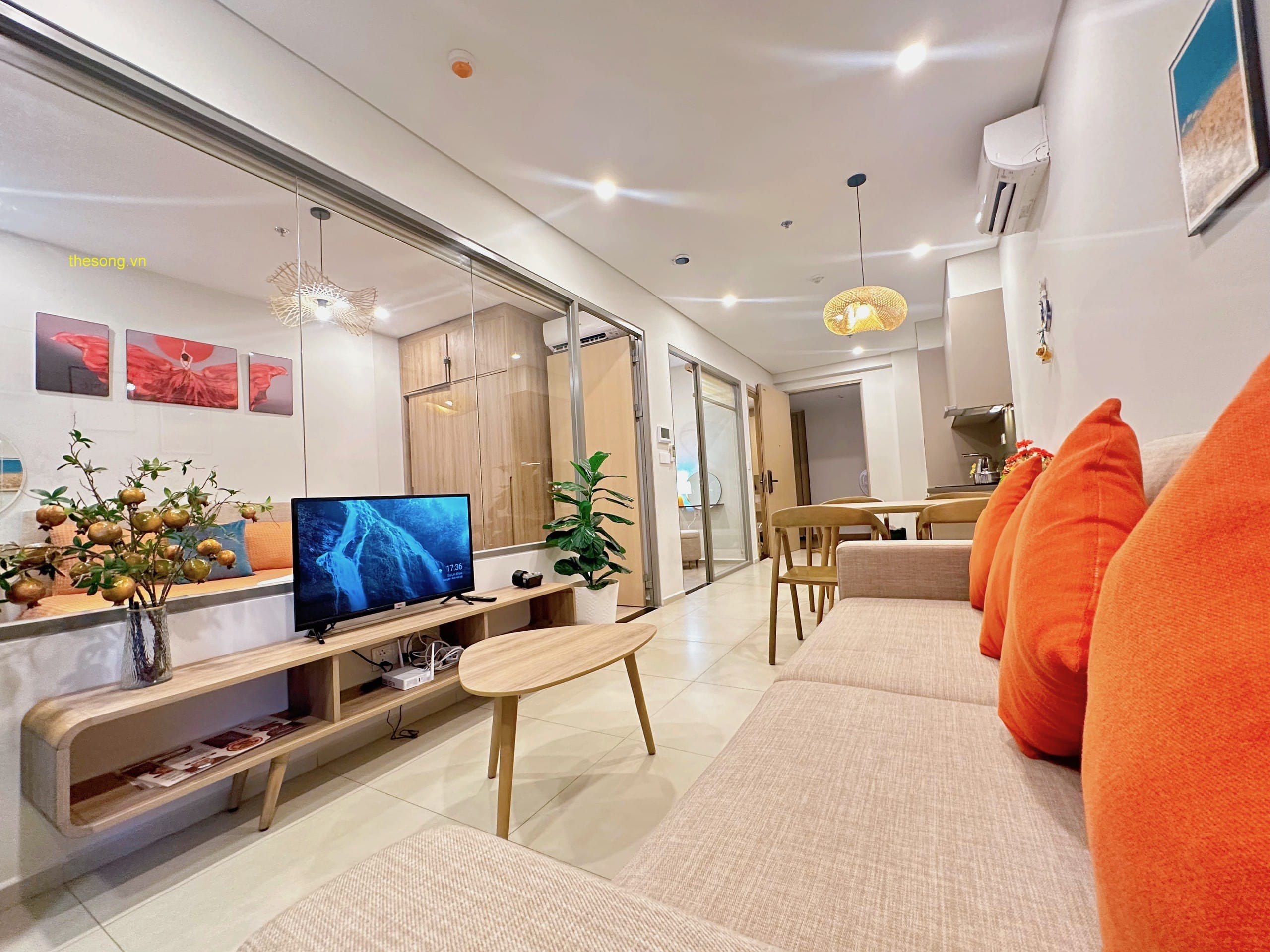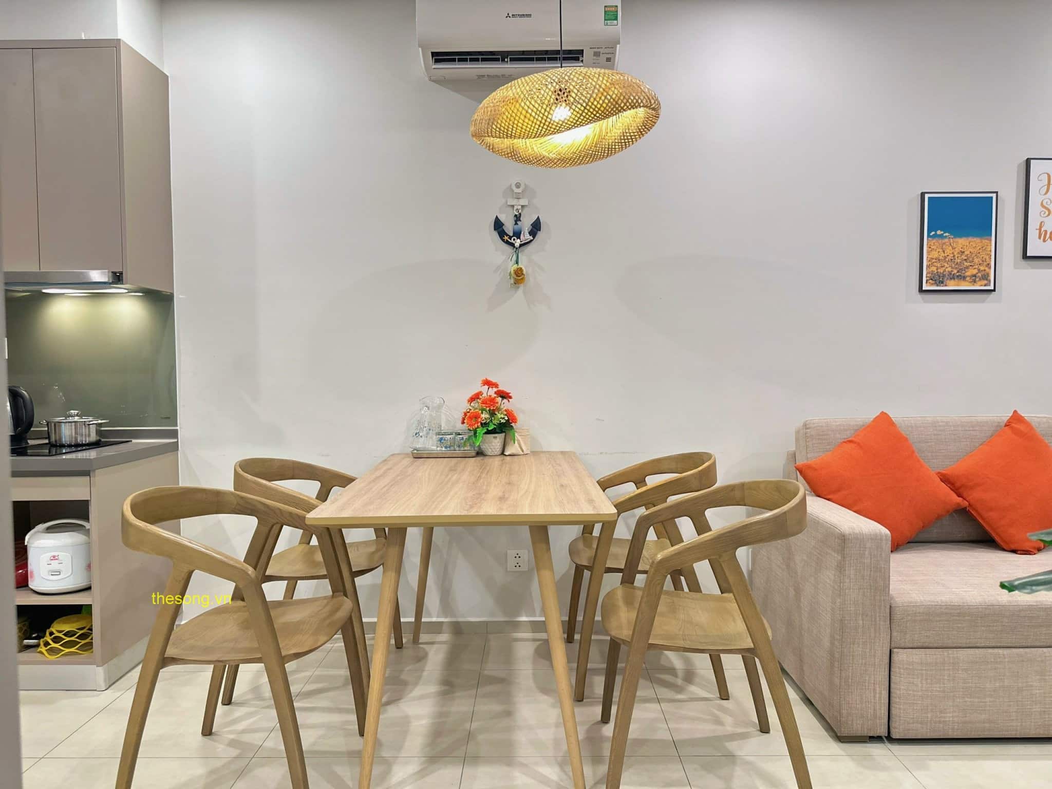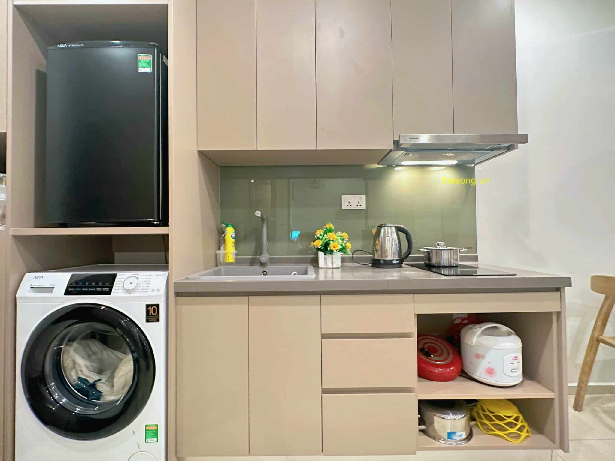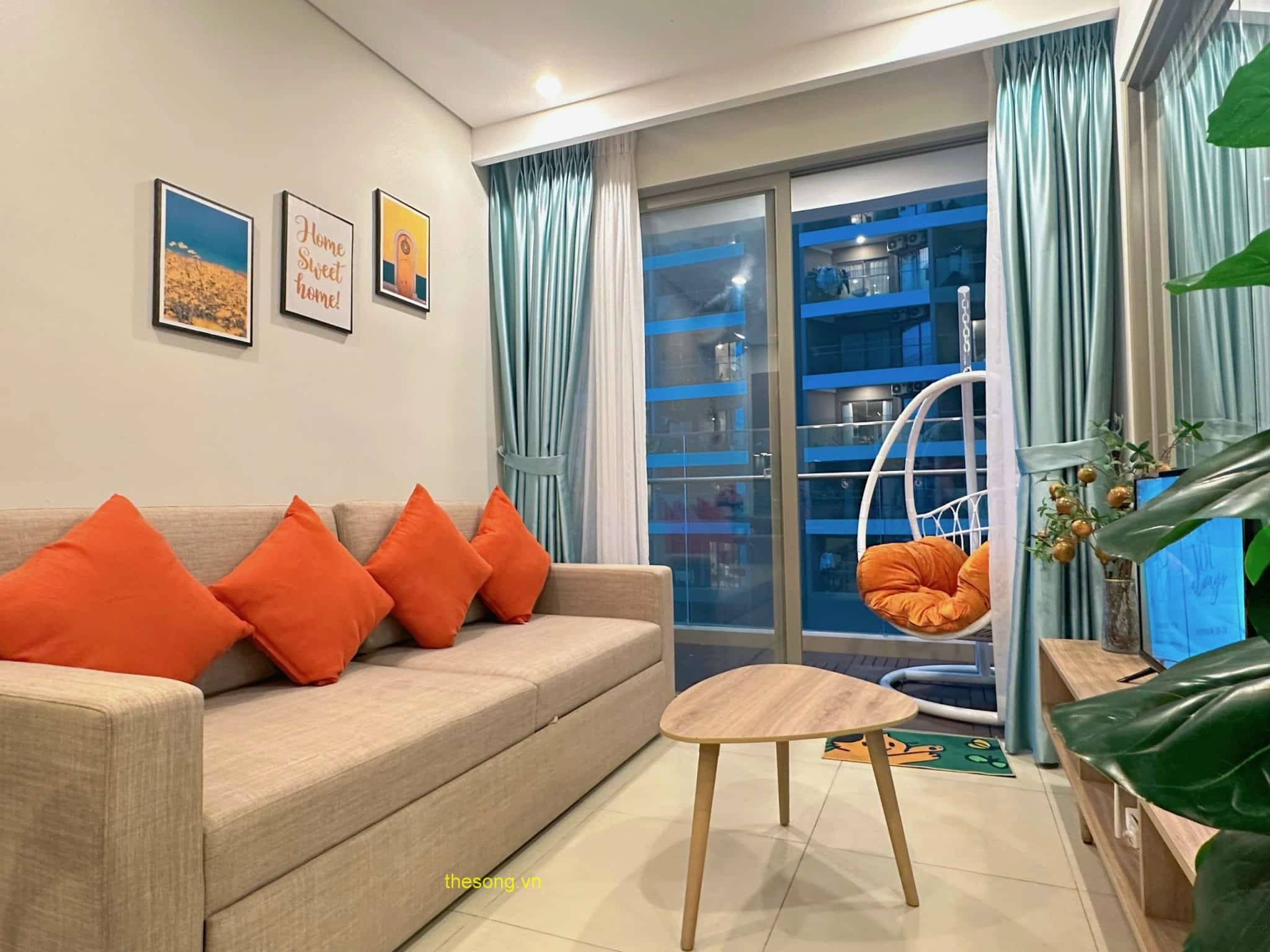 - Căn hộ được trang bị đầy đủ nội thất và tiện nghi như máy lạnh, máy giặt, máy nước nóng, máy sấy tóc, quạt máy, Tivi Smart Home, Wifi cáp quang, truyền hình cáp, dầu gội, sữa tắm, khăn tắm, kem đánh răng, và quạt máy. Có ban công nhìn ra bên ngoài để bạn có thể thư giãn.