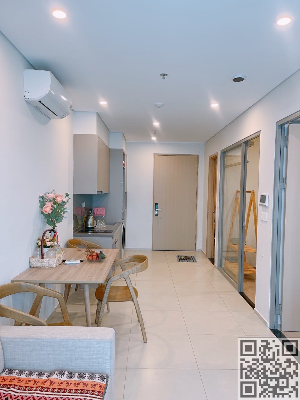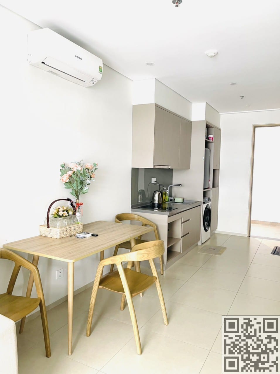 - Phòng bếp gồm bếp điện từ, dụng cụ nấu ăn, nồi cơm điện, máy hút khói, lò vi sóng, ấm siêu tốc, và gia vị nấu ăn.