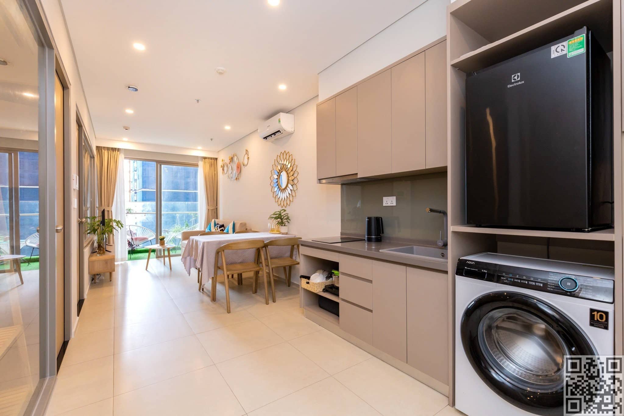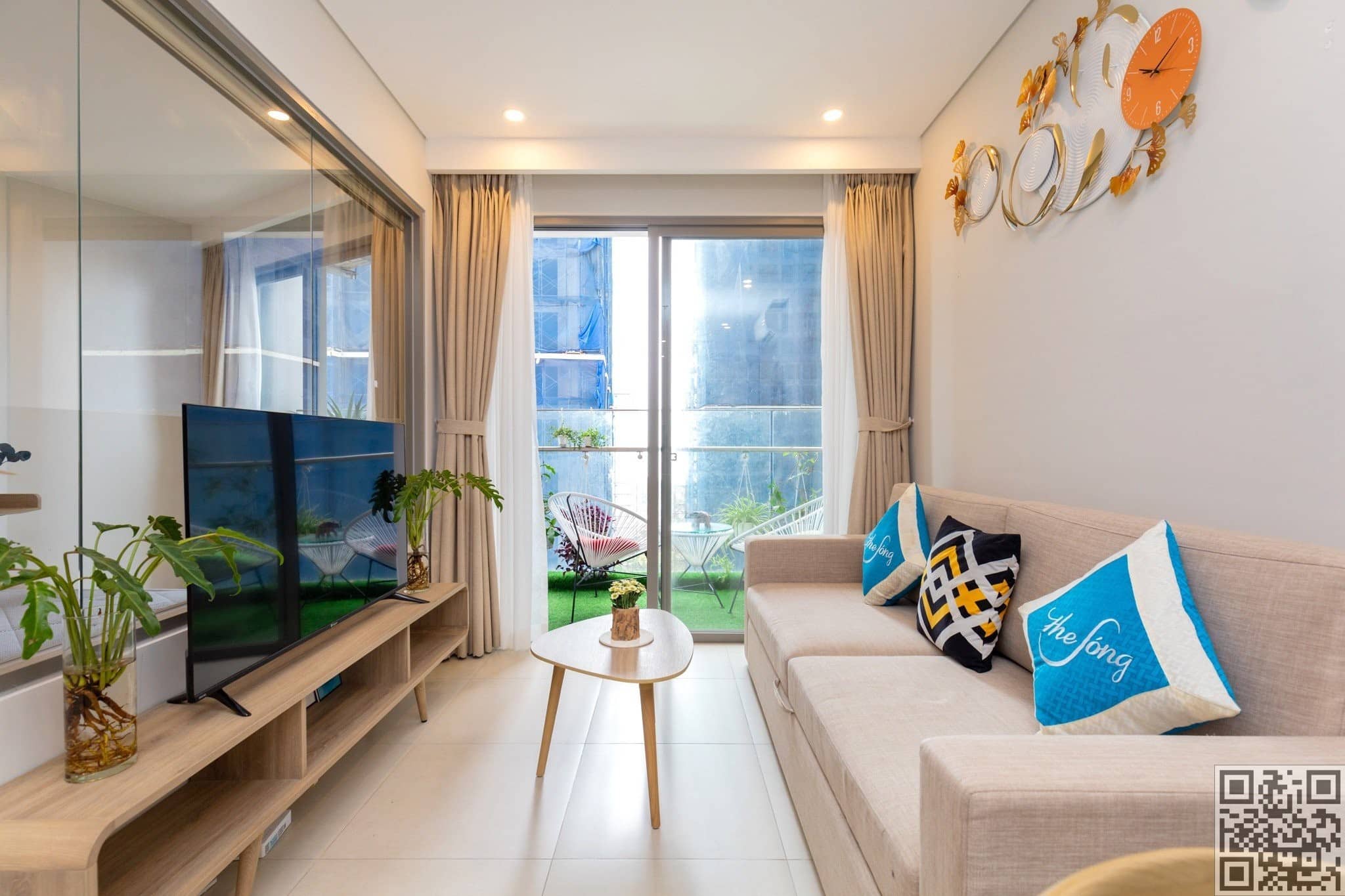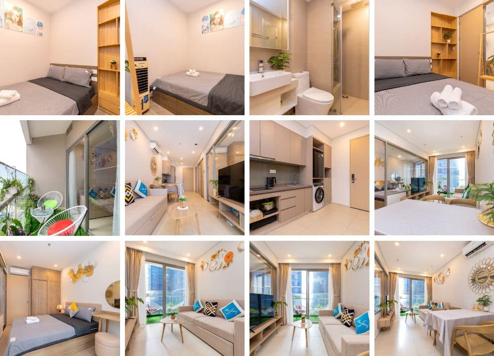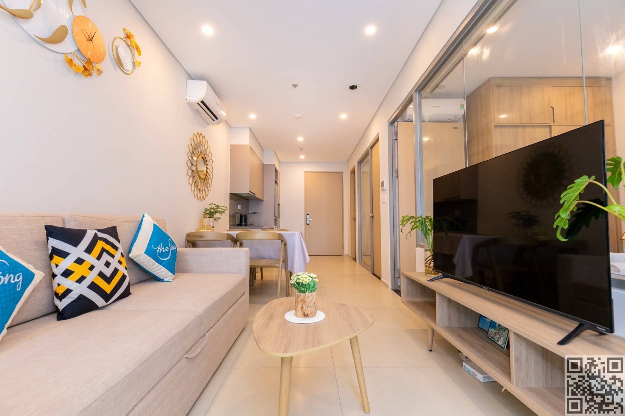 - Căn hộ được trang bị đầy đủ nội thất và tiện nghi, bao gồm máy lạnh, máy giặt, máy nước nóng, máy sấy tóc, quạt máy, Tivi Smart Home, Wifi cáp quang, truyền hình cáp, dầu gội, sữa tắm, khăn tắm, kem đánh răng và nhiều vật dụng cá nhân khác.