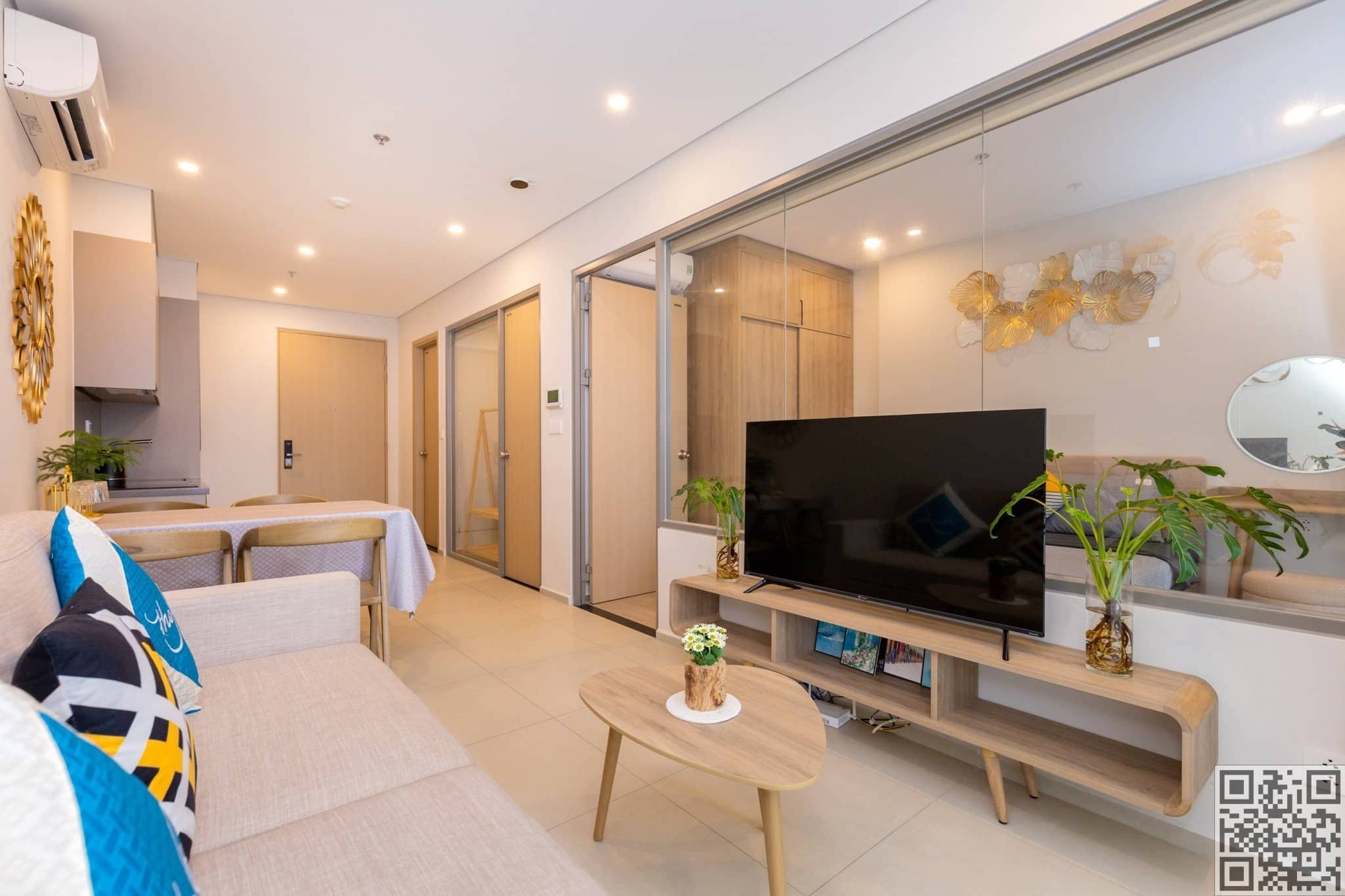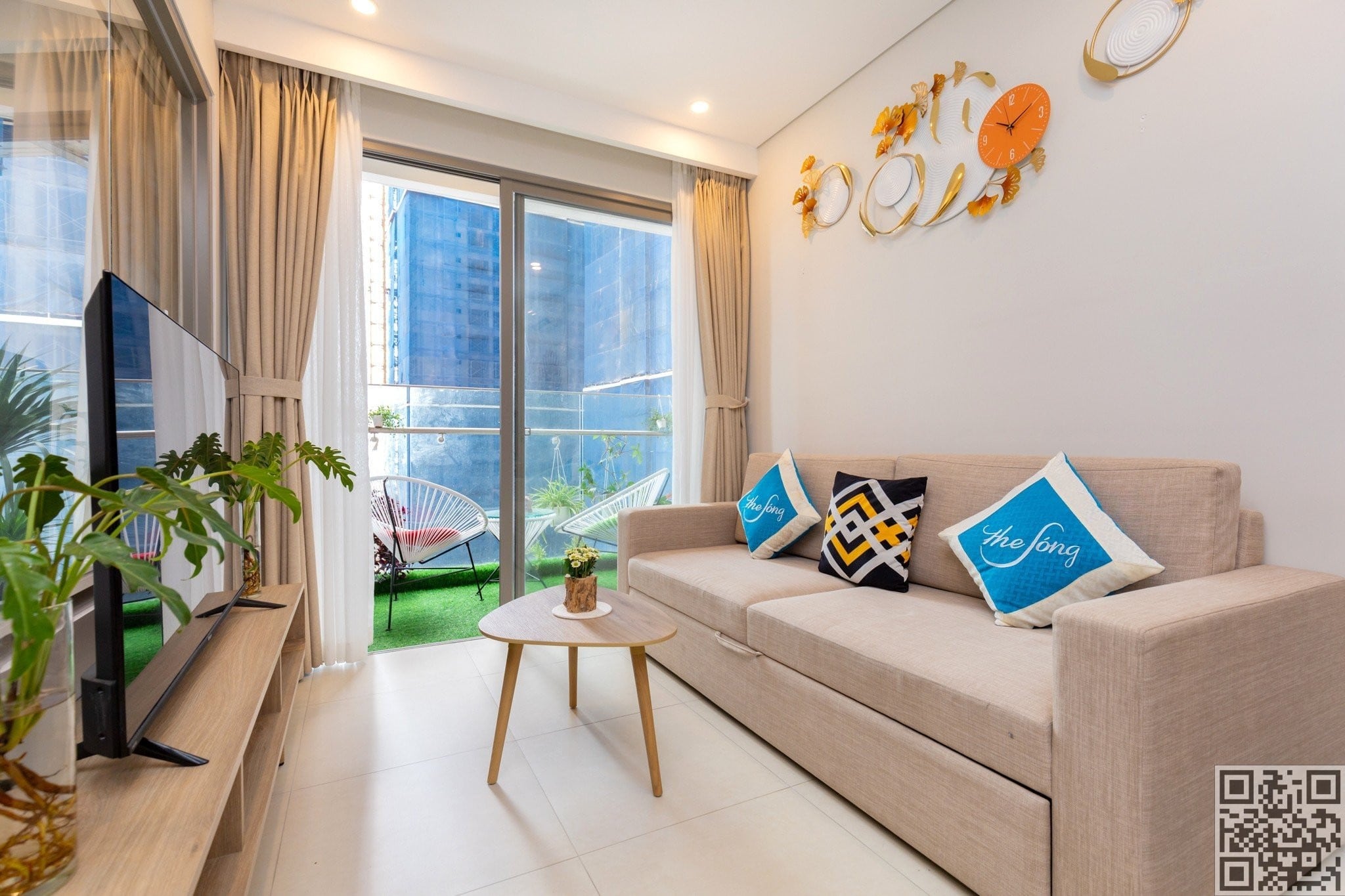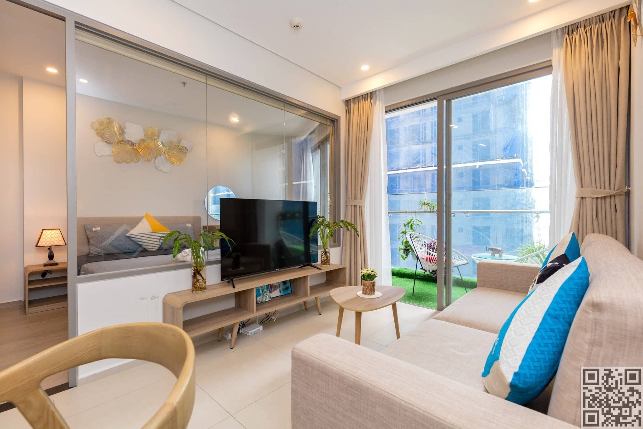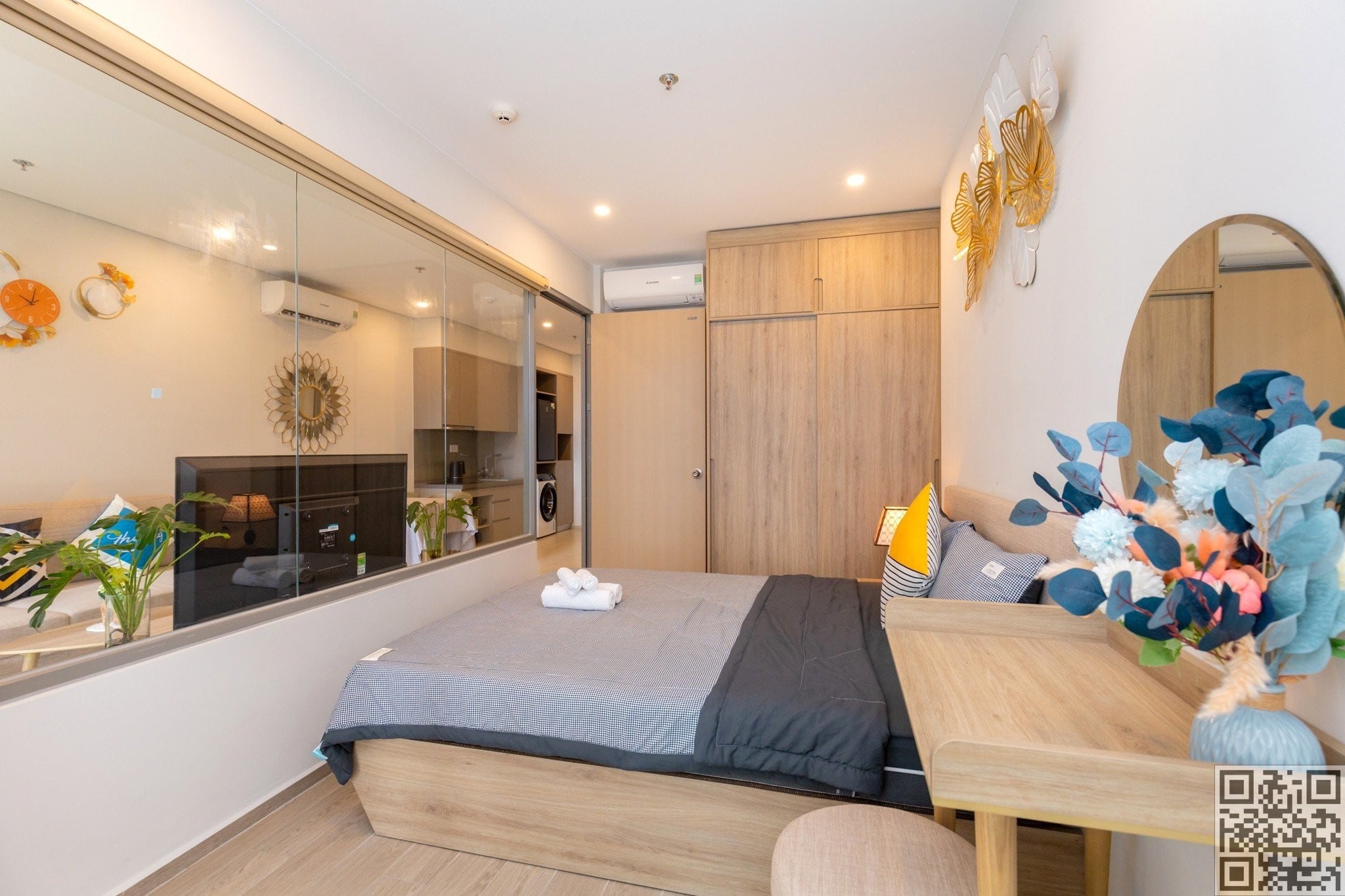 - Căn hộ được trang bị đầy đủ nội thất và tiện nghi, bao gồm máy lạnh, máy giặt, máy nước nóng, máy sấy tóc, quạt máy, Tivi Smart Home, Wifi cáp quang, truyền hình cáp, dầu gội, sữa tắm, khăn tắm, kem đánh răng và nhiều vật dụng cá nhân khác.