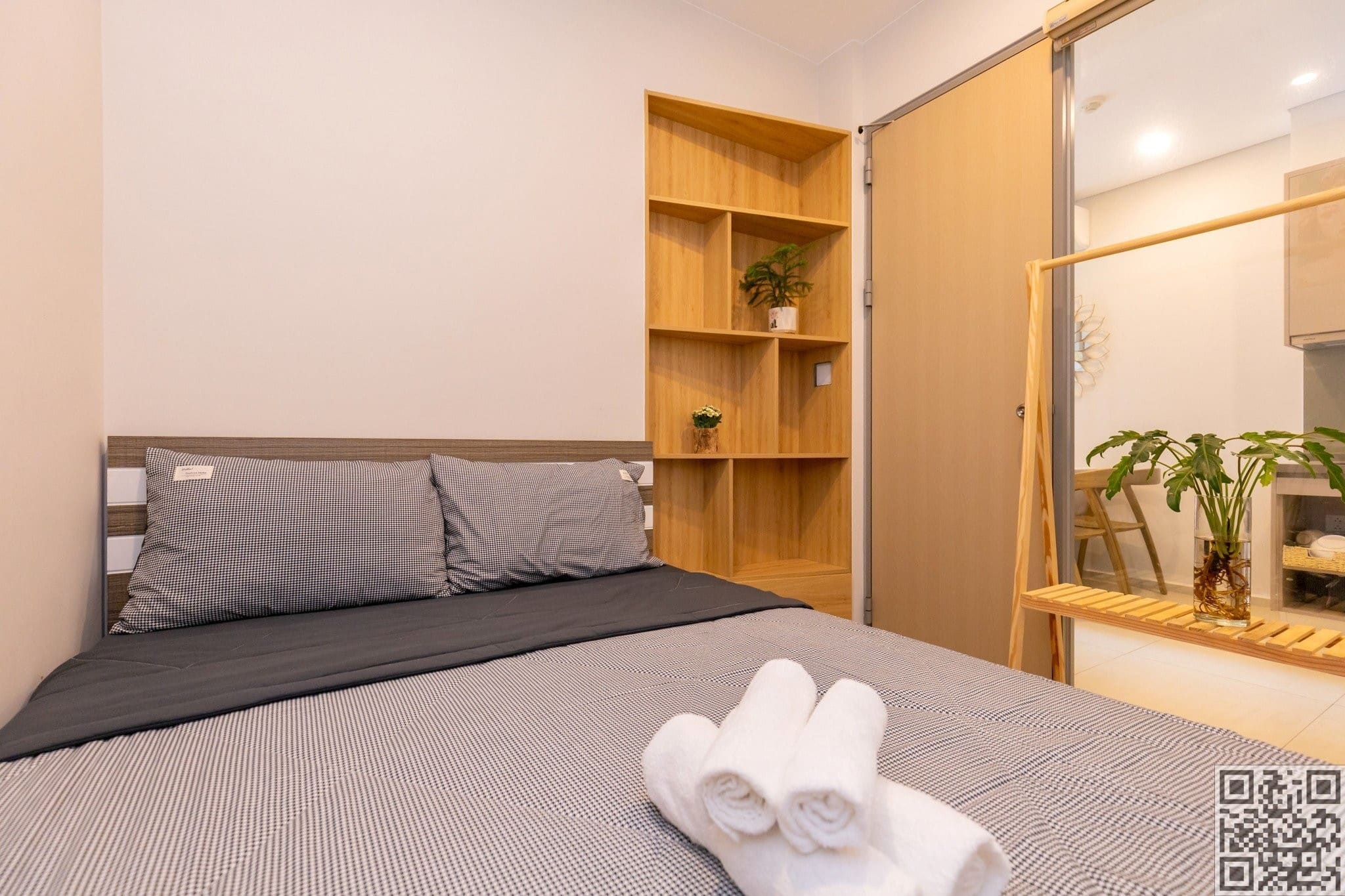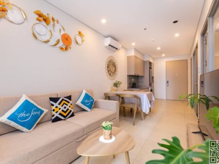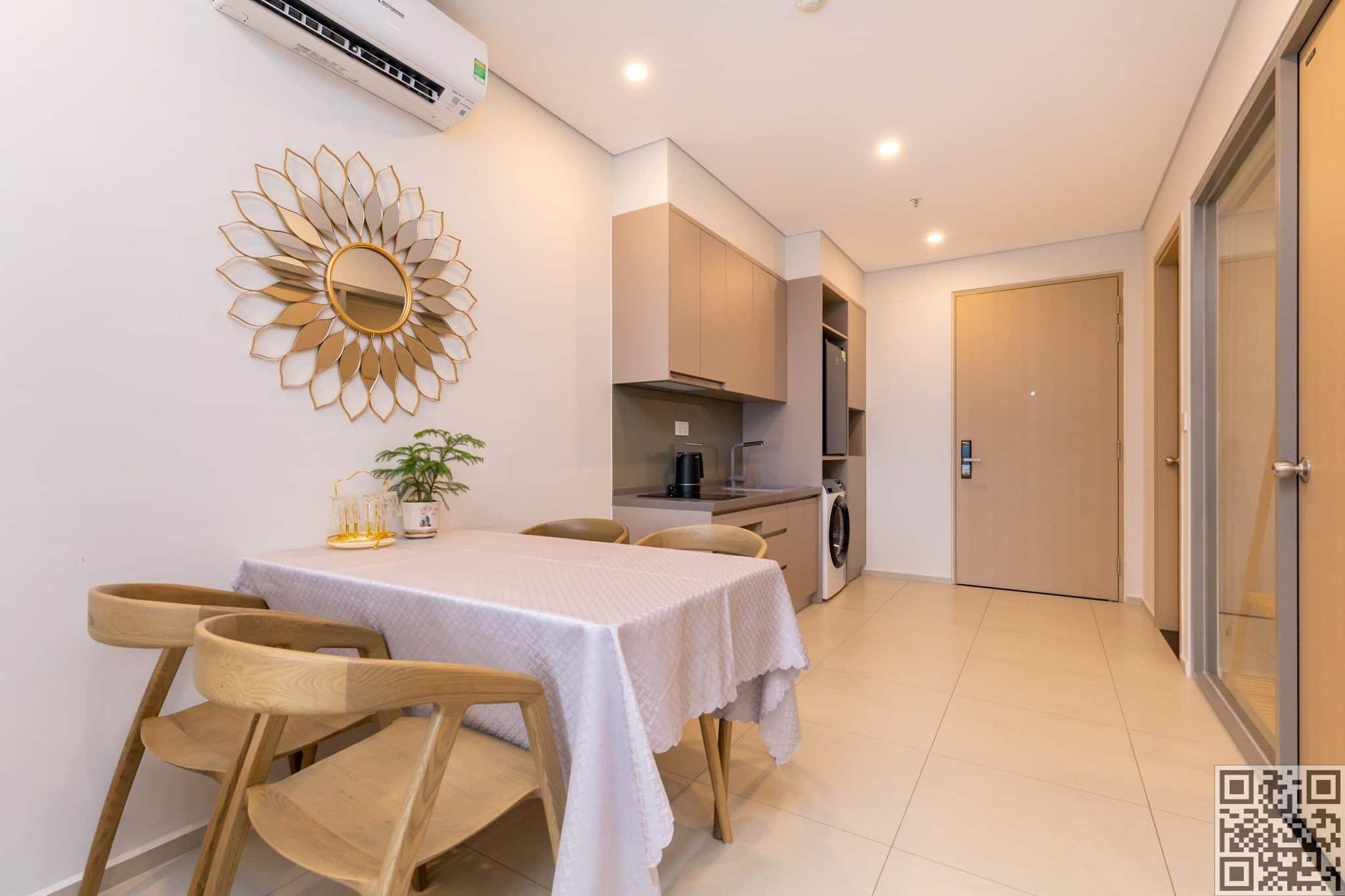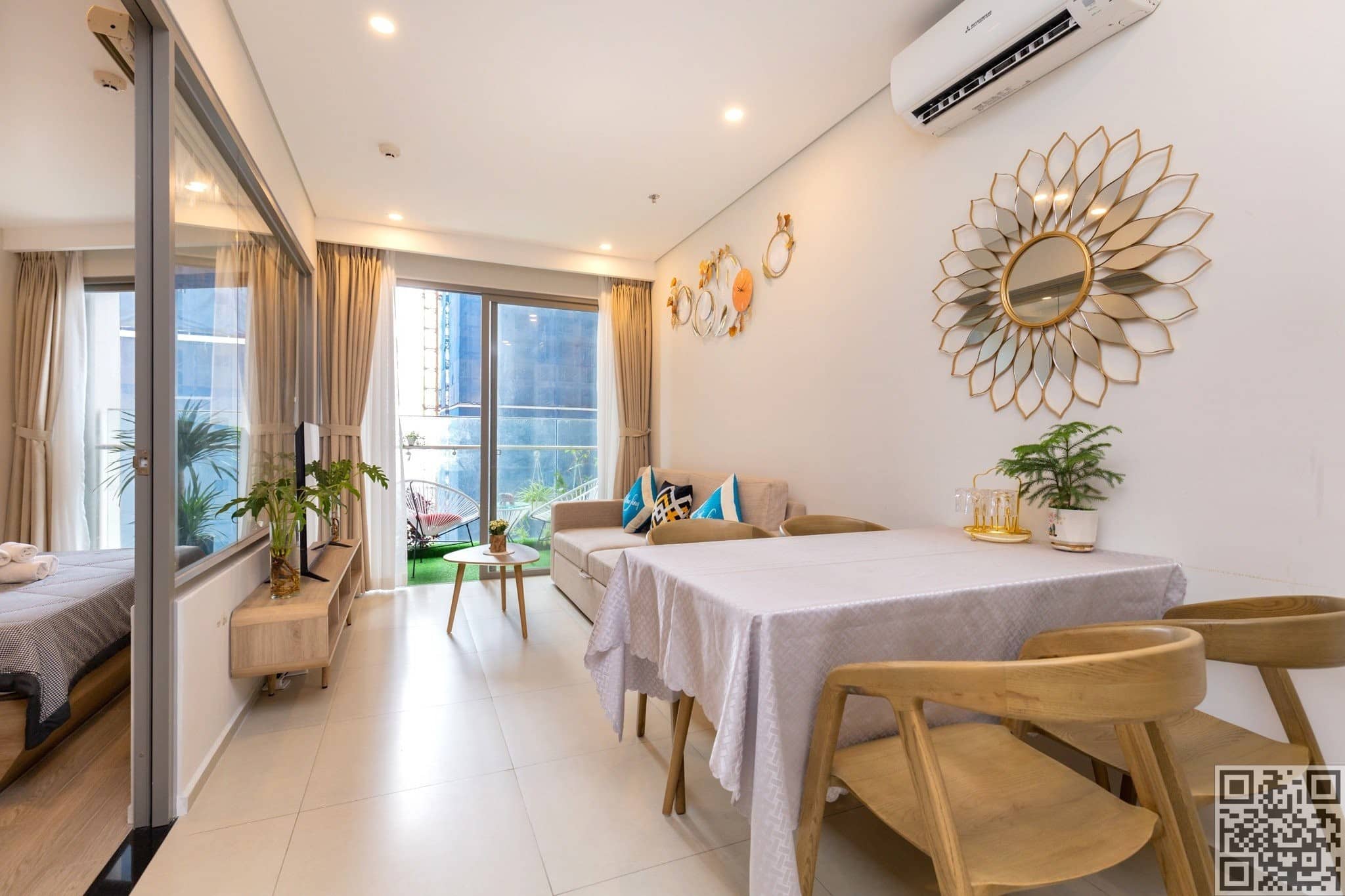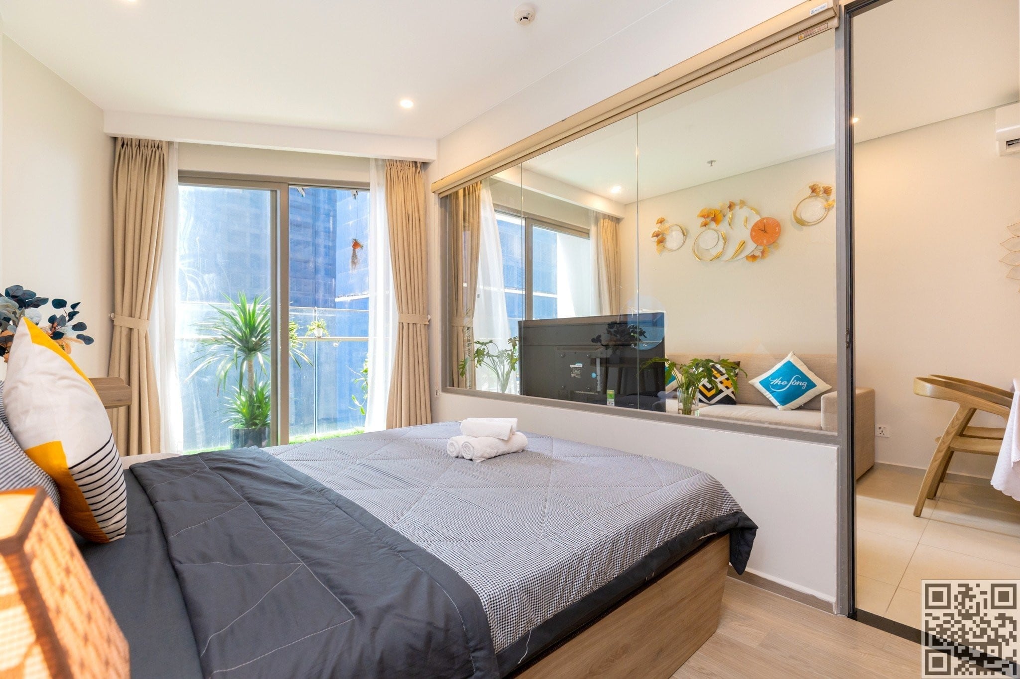 - Căn hộ được trang bị đầy đủ nội thất và tiện nghi, bao gồm máy lạnh, máy giặt, máy nước nóng, máy sấy tóc, quạt máy, Tivi Smart Home, Wifi cáp quang, truyền hình cáp, dầu gội, sữa tắm, khăn tắm, kem đánh răng và nhiều vật dụng cá nhân khác.